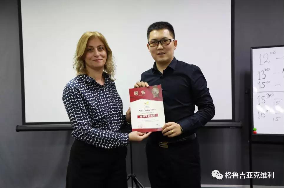 12月20日,格鲁吉亚葡萄酒学院驻华分院开学典礼暨第一期学员开课典礼在宇业大厦21楼隆重举行。格鲁吉亚葡萄酒学院院长、国际葡萄酒与葡萄酒组织协会(VIO)副总裁安娜,格鲁吉亚驻华文化推