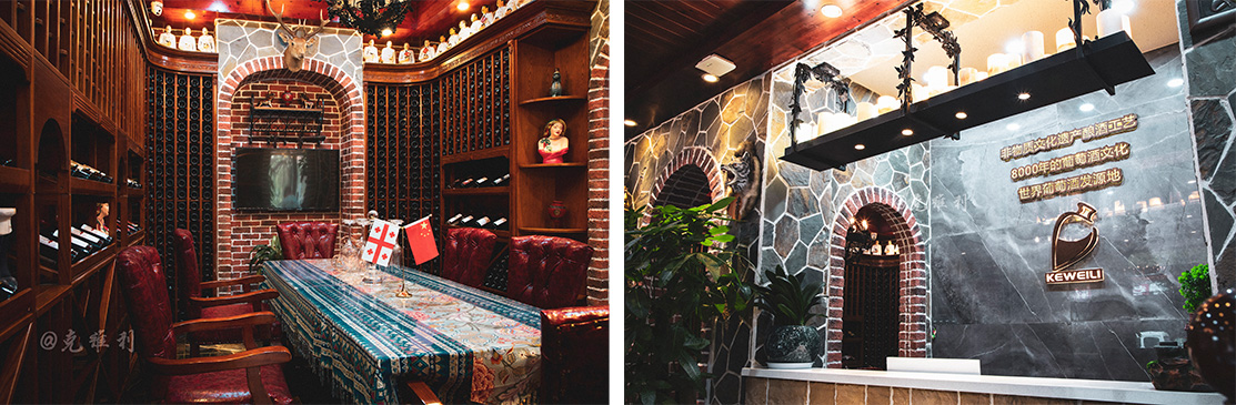 格鲁吉亚克维利总部位于浙江义乌,与格鲁吉亚政府各部门达成长期战略合作,室内外每个细微之处都透着浓浓的格鲁吉亚风情,直观的展现出格鲁吉亚8000多年葡萄酒历史的人文风情。